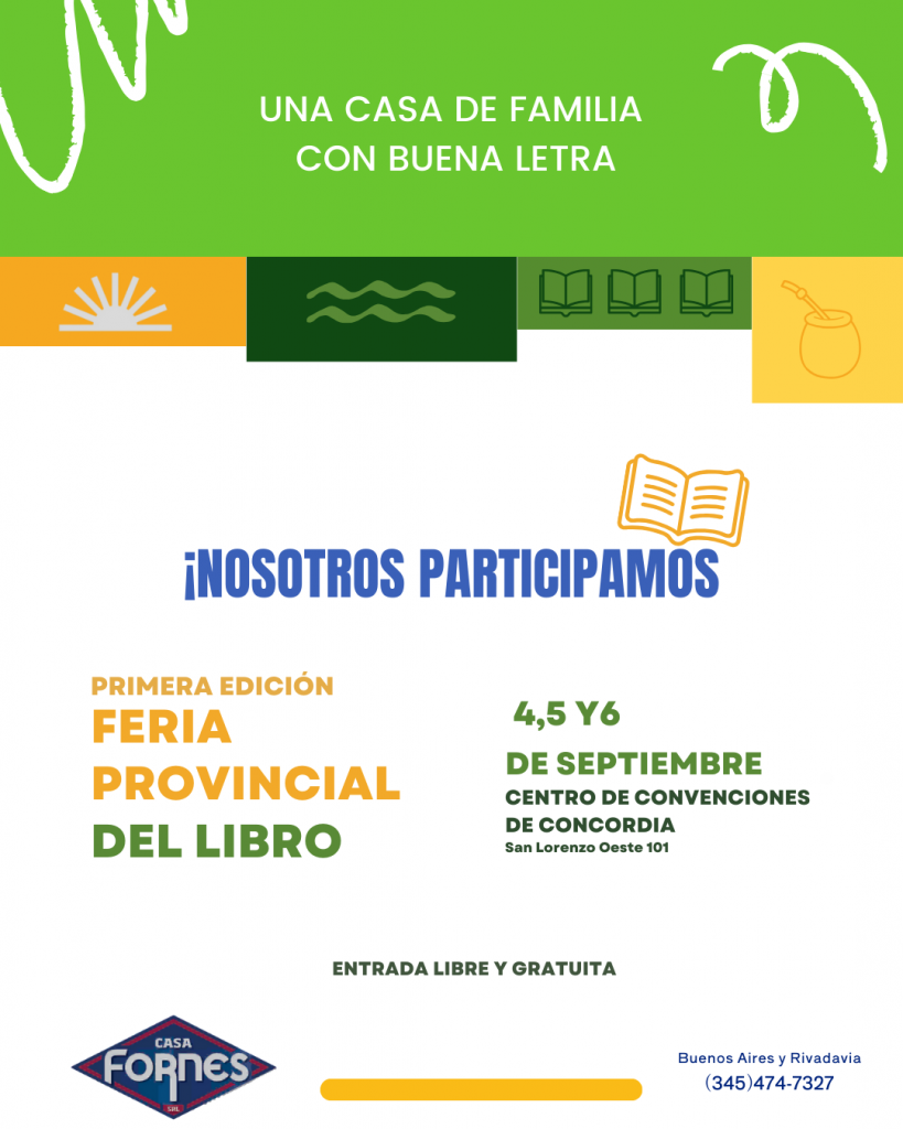 Del 4 al 6 de septiembre, participamos con entusiasmo en la primera Feria Provincial del Libro, que se realizará en el Centro de Convenciones de Concordia. Un evento que celebra la lectura, la cultura y el encuentro, y que reúne a grandes exponentes del ámbito literario y artístico. Nos enorgullece formar parte de una feria …