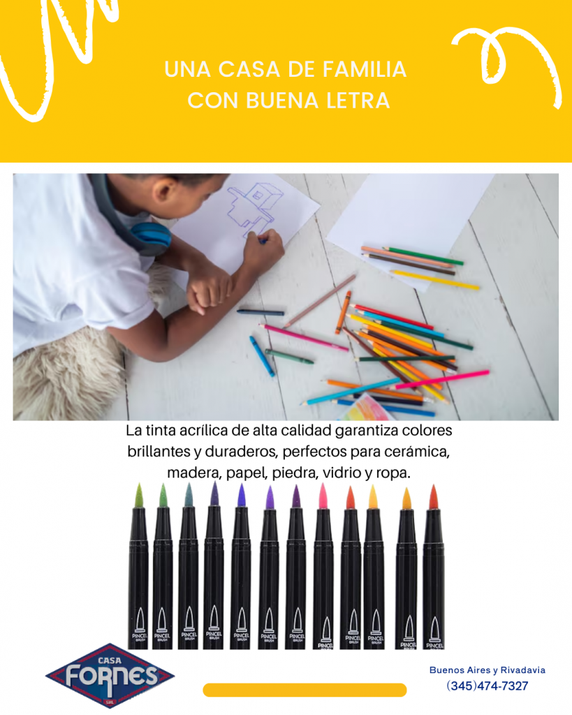 El sector de artística de Casa Fornes se renueva con la llegada de productos que marcan tendencia a nivel internacional. Ya están disponibles en el local una amplia gama de marcadores importados, reconocidos por su intensidad de color y la variedad de puntas que ofrecen. Desde trazos finos y precisos hasta puntas pincel para efectos más expresivos, estos marcadores permiten personalizar cada diseño y ampliar las posibilidades creativas de artistas, estudiantes y aficionados.