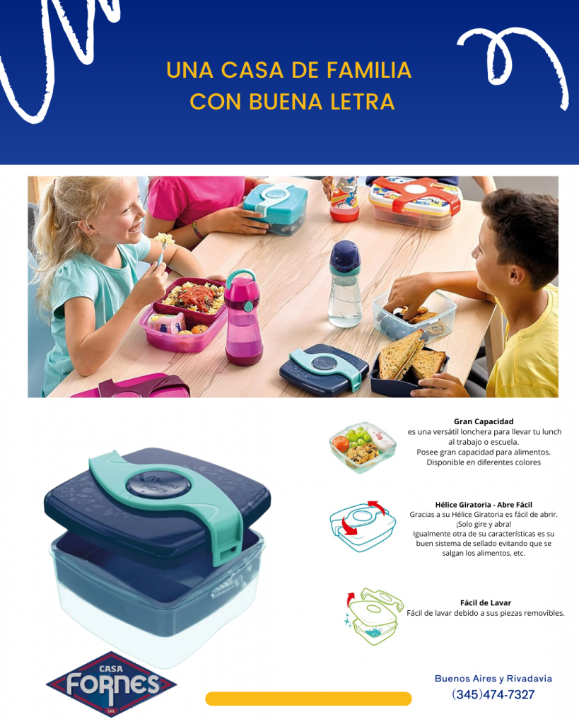 Casa Fornés sigue ampliando su variedad de productos para ofrecer soluciones prácticas a sus clientes. Además de su ya reconocida gama de útiles escolares, ahora cuenta con una gran selección de artículos esenciales para el día a día, como viandas y botellas, ideales para la escuela, el trabajo o cualquier actividad cotidiana.